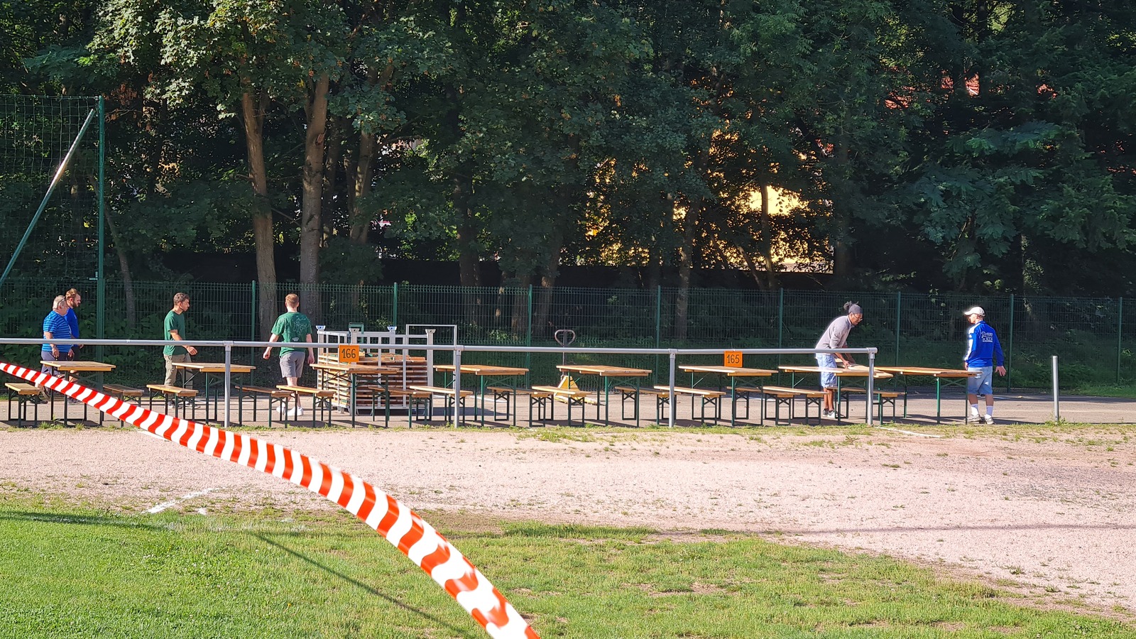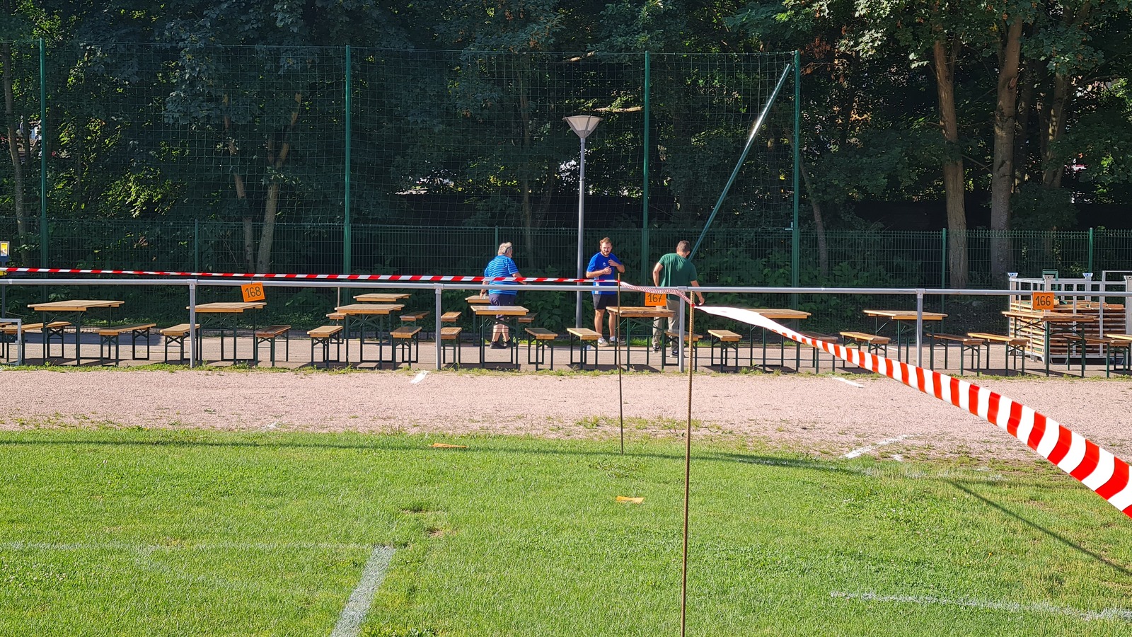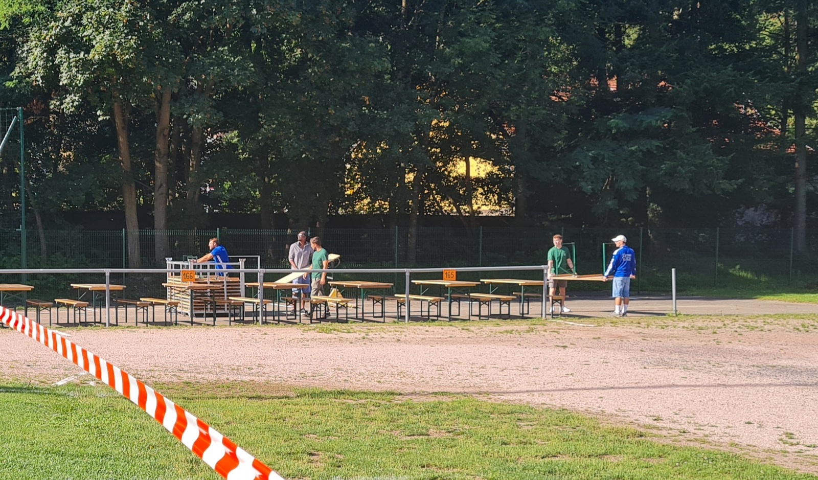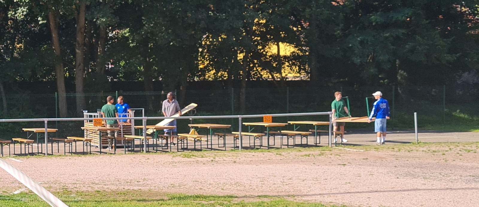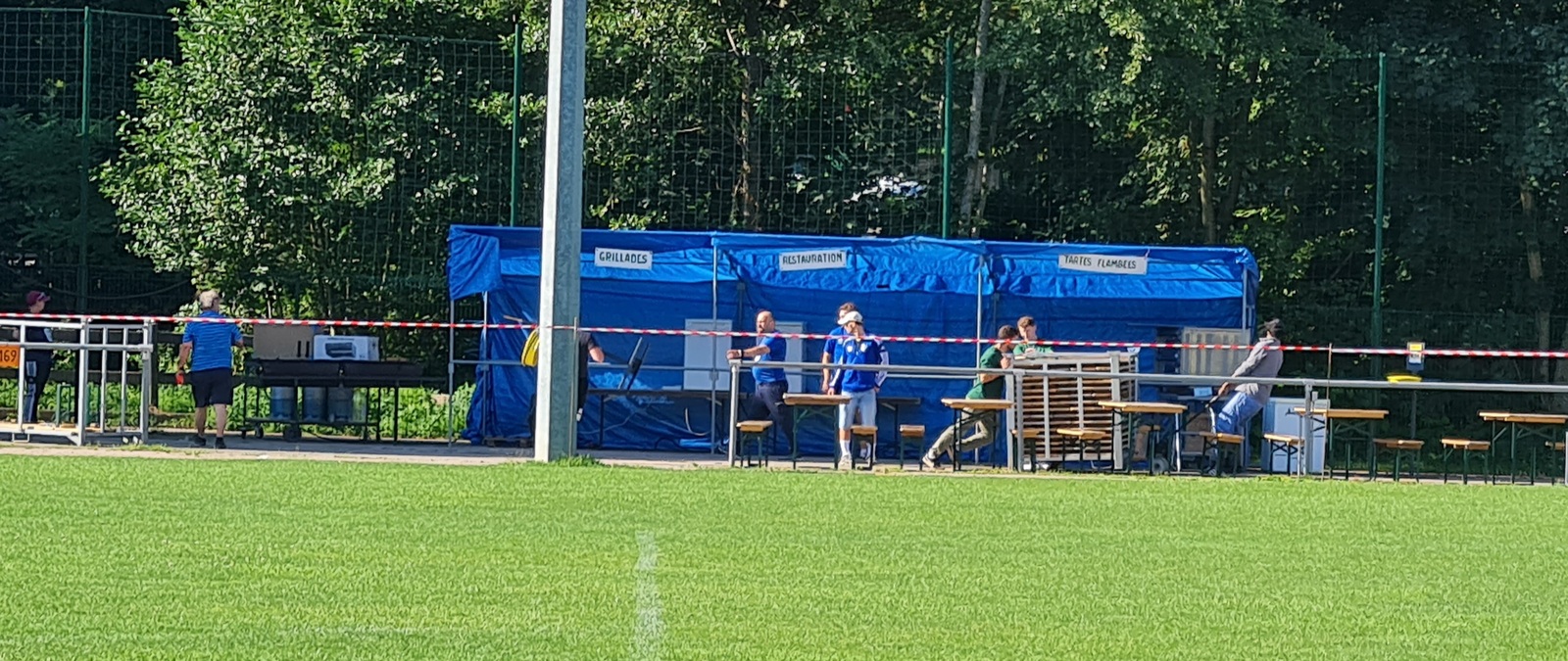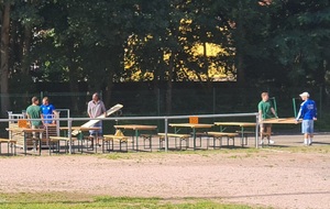 Sous la direction de Jean-Louis et Hervé, avec les joueurs seniors et les membres du comité, les préparatifs du 21e Marché aux Puces se déroule dans la bonne humeur sous un soleil radieux.